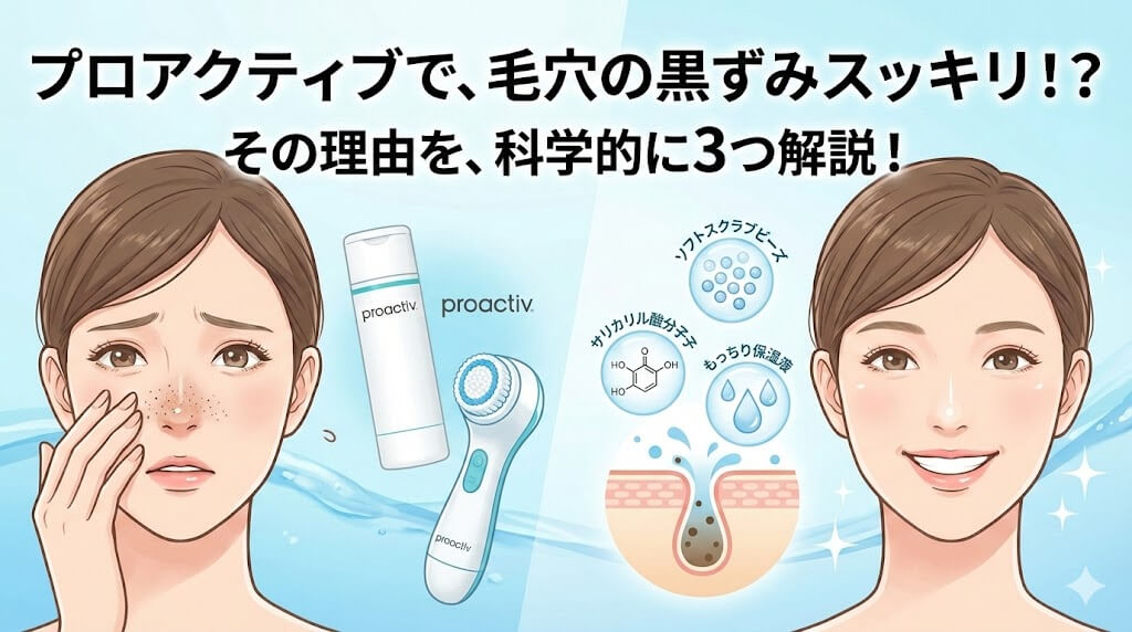 この記事では、プロアクティブが毛穴の黒ずみケアに効果的な理由を詳しく紹介しています。 プロアクティブは、独自の洗浄システムと有効成分によって、頑固な毛穴の黒ずみをスッキリと洗い流す効果が期待できる洗顔料です。 ニキビケアの印象が強いプロア...
