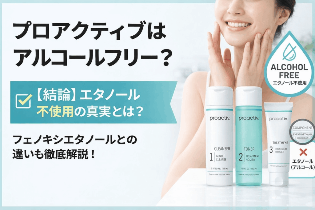 この記事では、プロアクティブのアルコール成分について解説しています。 結論から言うと、プロアクティブは完全なアルコールフリーではなく、一部の製品にアルコールが配合されています。 これは、ニキビの有効成分を毛穴の奥までしっかり浸透させ、原因... -