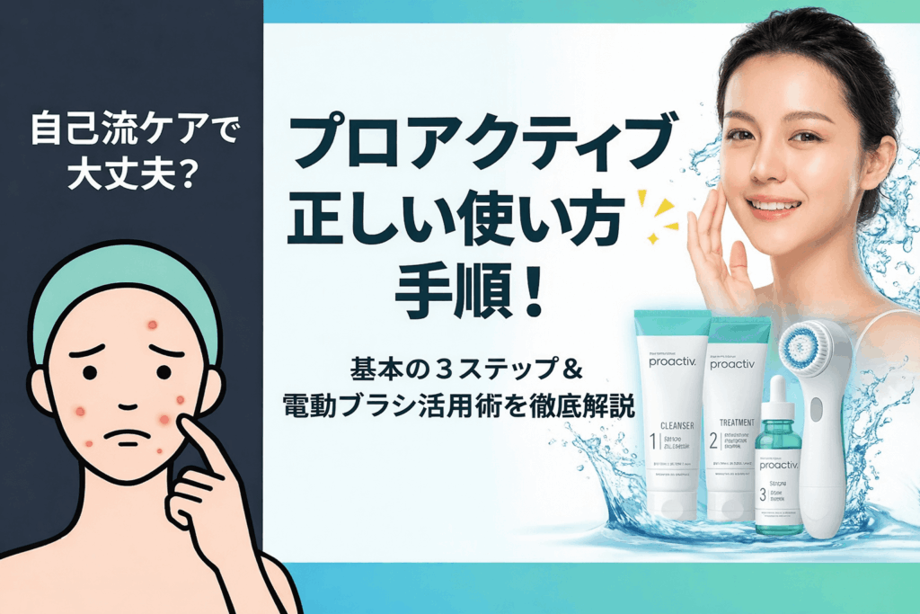 ※本記事はメーカー公開情報・成分資料・皮膚科学資料をもとに作成しています。 プロアクティブの使い方の手順は、洗顔・美容液・ジェルの3ステップを正しい順番で守ることで、ニキビへの効果が最大限に発揮されます。 殺菌と抗炎症の有効成分を段階的に重... -