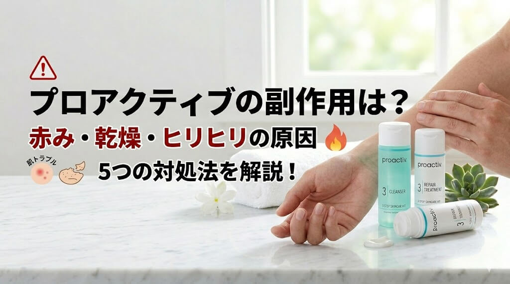 この記事では、プロアクティブの副作用である赤みやヒリヒリ感、かゆみ、乾燥、皮むけなどの原因と対処法を解説します。 プロアクティブで起こるこれらの肌トラブルは、有効成分の刺激などによるものが多く、正しい使い方と徹底した保湿で未然に防ぐことが...